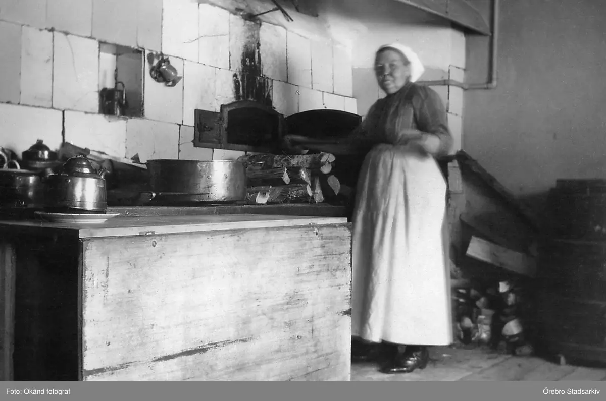 Uttag av bröd ur köksugnen på Bystad herrgård, 1910-tal