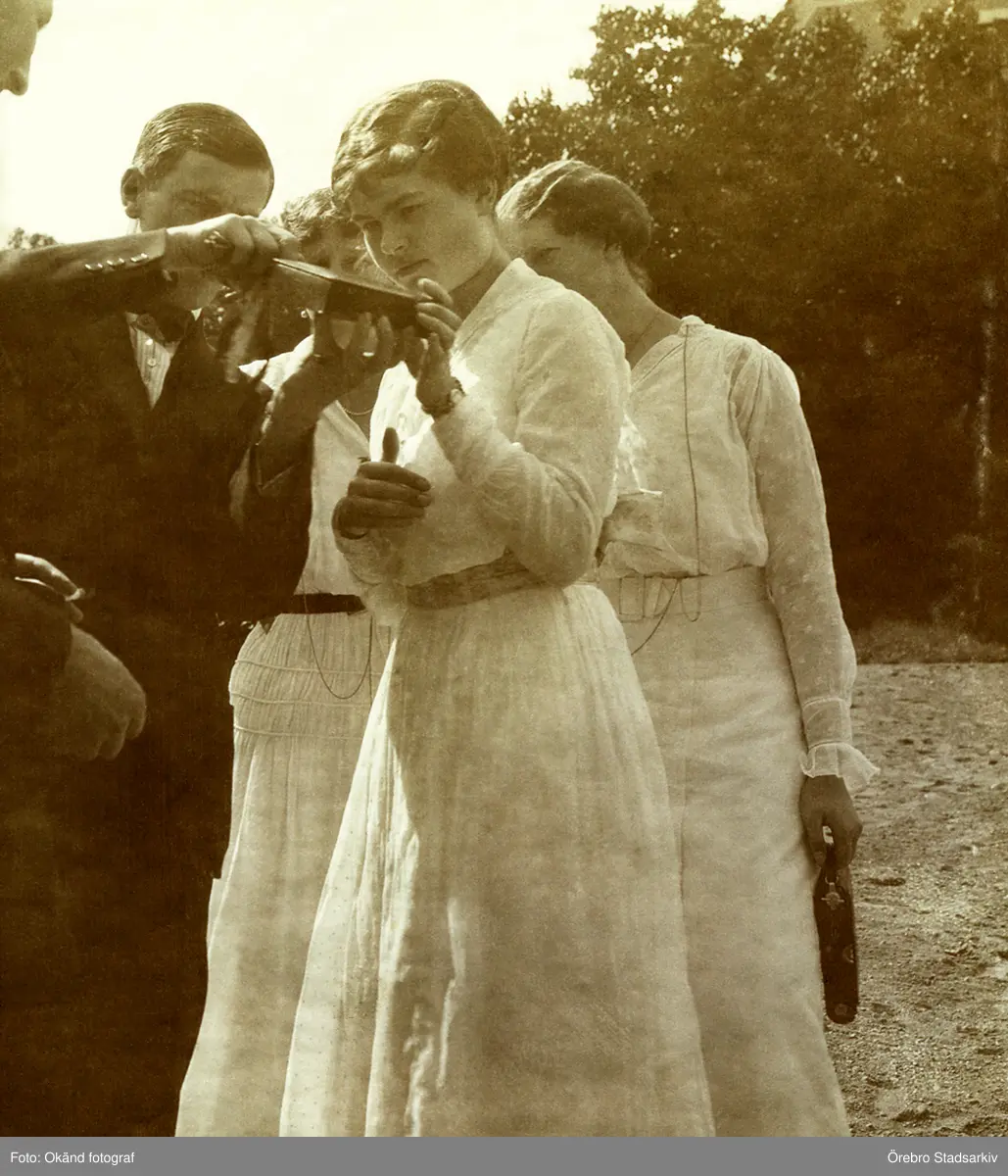 Sällskap med kameror på bröllop på Färna herrgård, 1915-08-14
