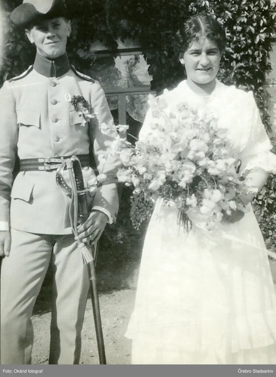 Marskalk och tärna på bröllop vid Ulvshyttans herrgård, 1915-08-30