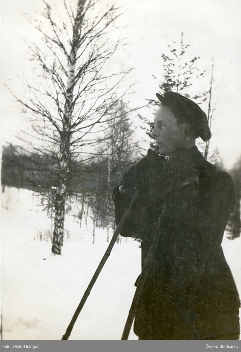 Ung man i skidspåret vid Ulvshyttans herrgård, 1915