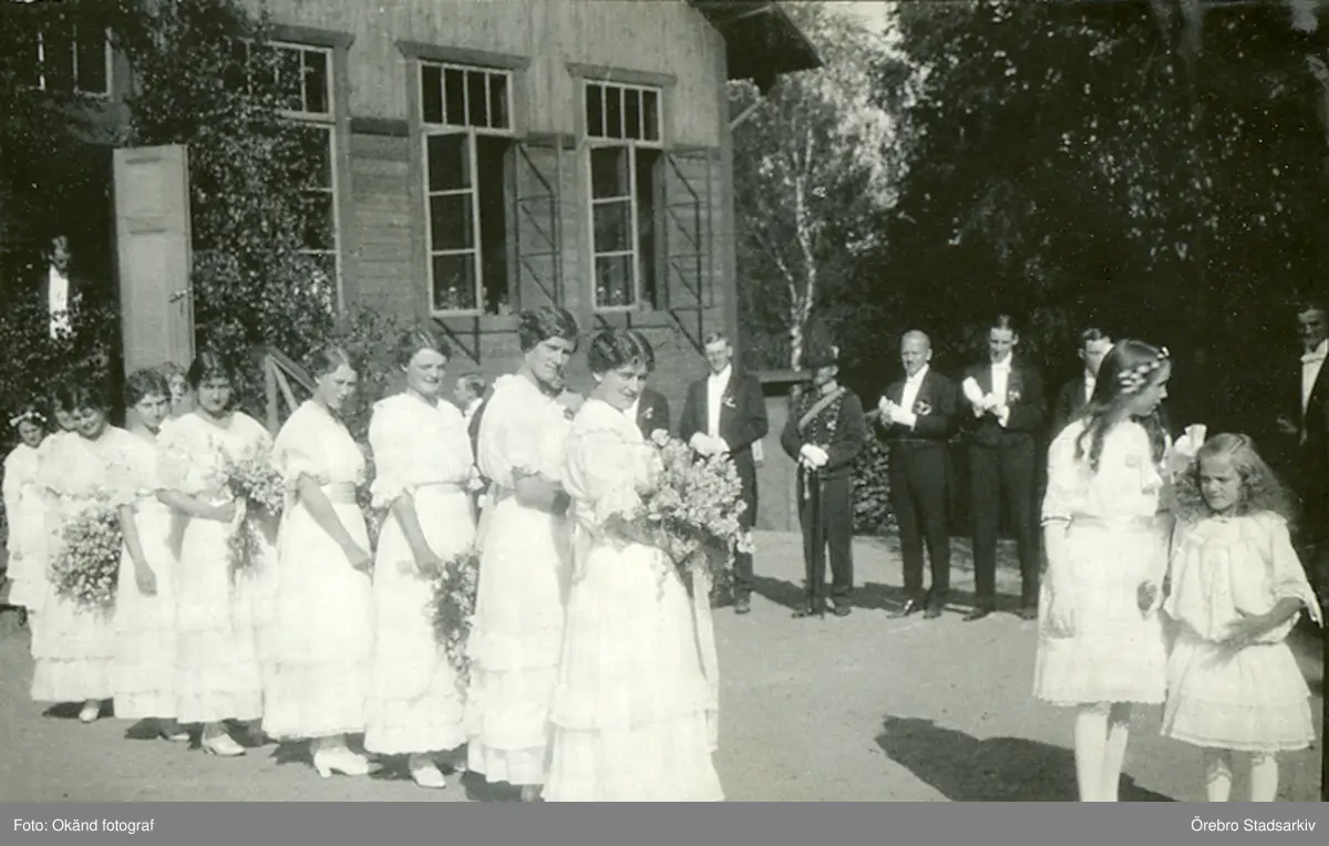 Tärnor och marskalker på bröllop vid Ulvshyttans herrgård, 1915-08-30