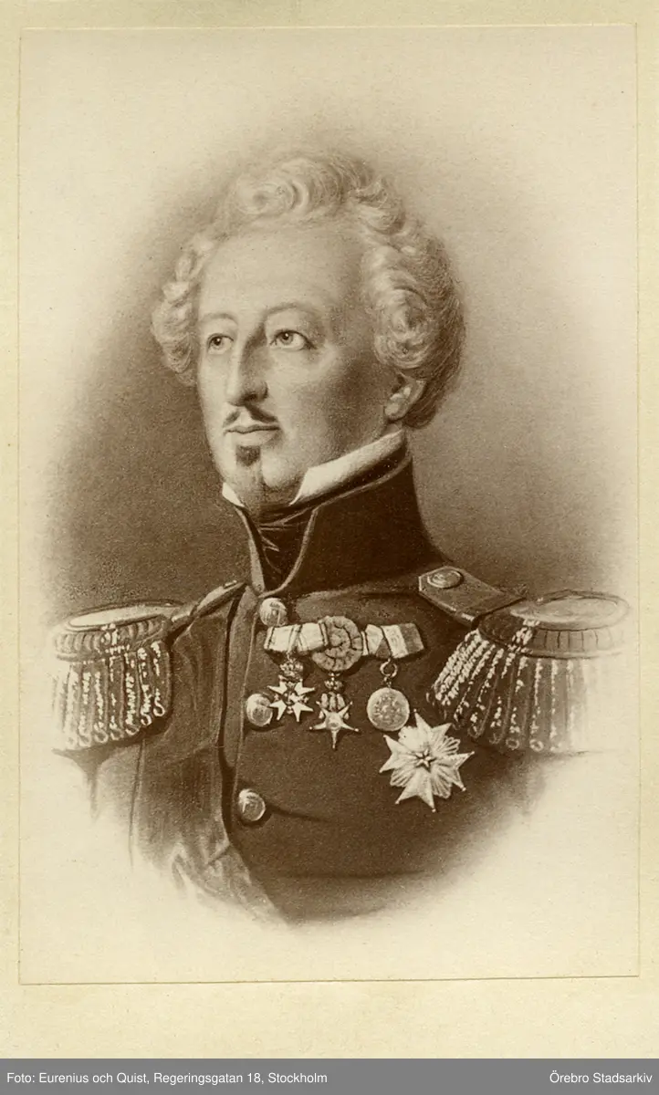 Tecknat porträtt av Greve Fredrik Riddarstolpe i uniform med epåletter, omkring 1840
