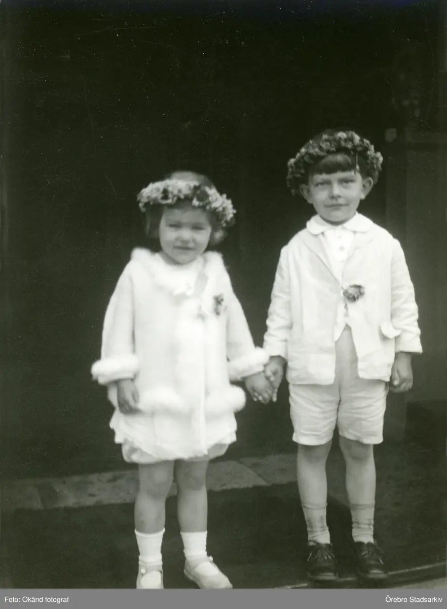Mary och Johan Gripenstedt festklädda på bröllop, 1920