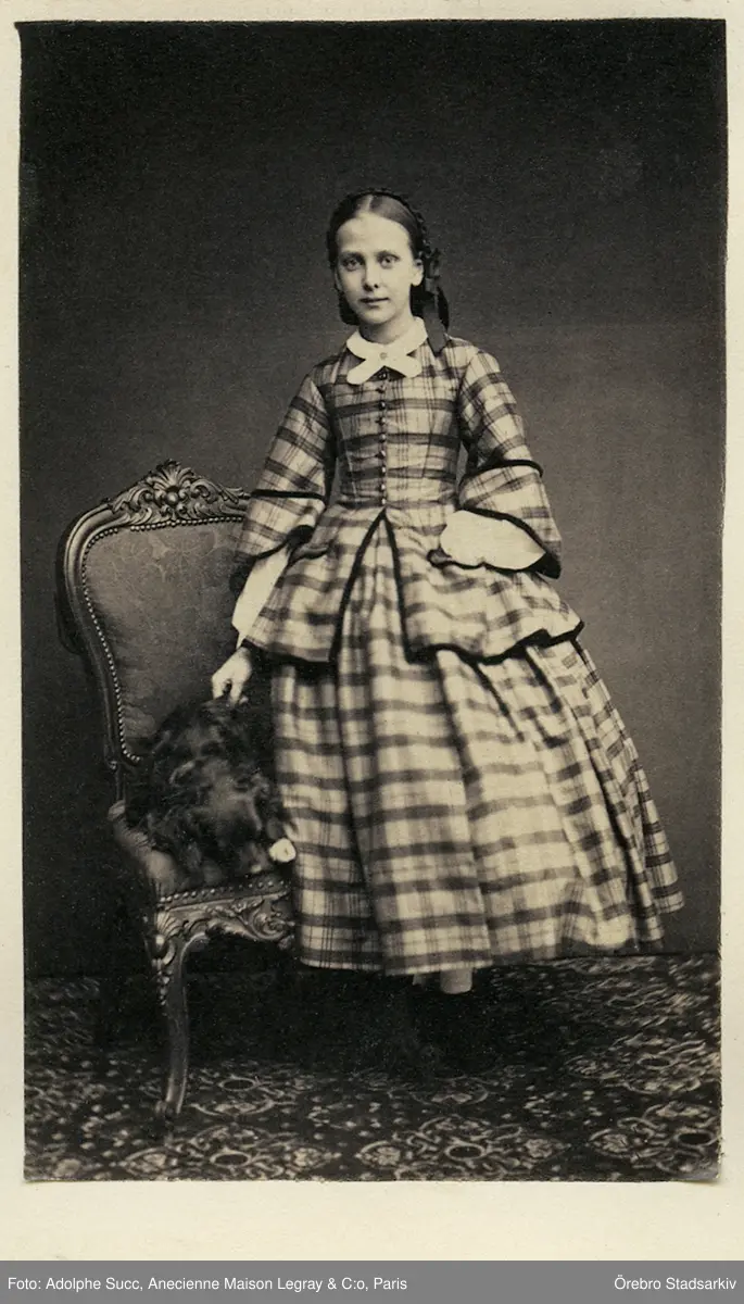 Porträtt av fröken Ingeborg Bonde med hund, ca 1870