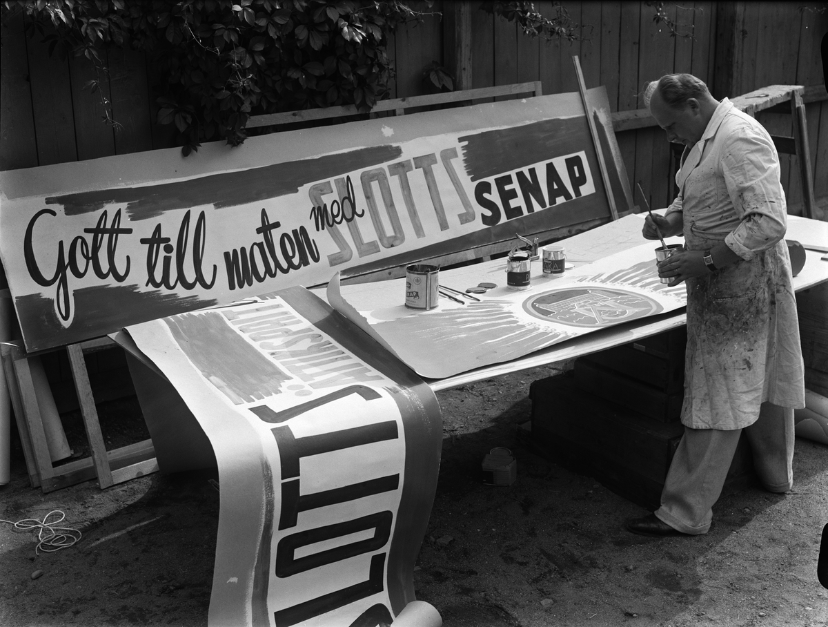 Produktion av reklam för Slotts senap, för AB Upsala Ättiksfabrik, Uppsala augusti 1939