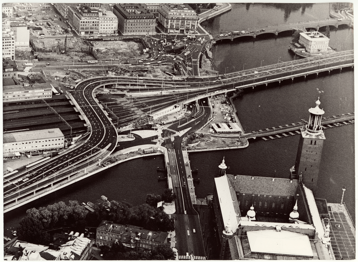 Flygbild över nygjord trafikplats, redo för högertrafik.