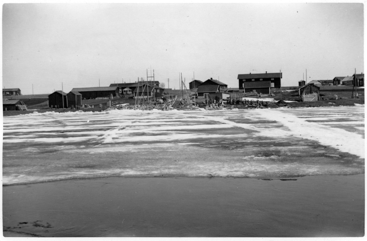 Bygge av vägbro över Kalixälven vid Tärendö.
