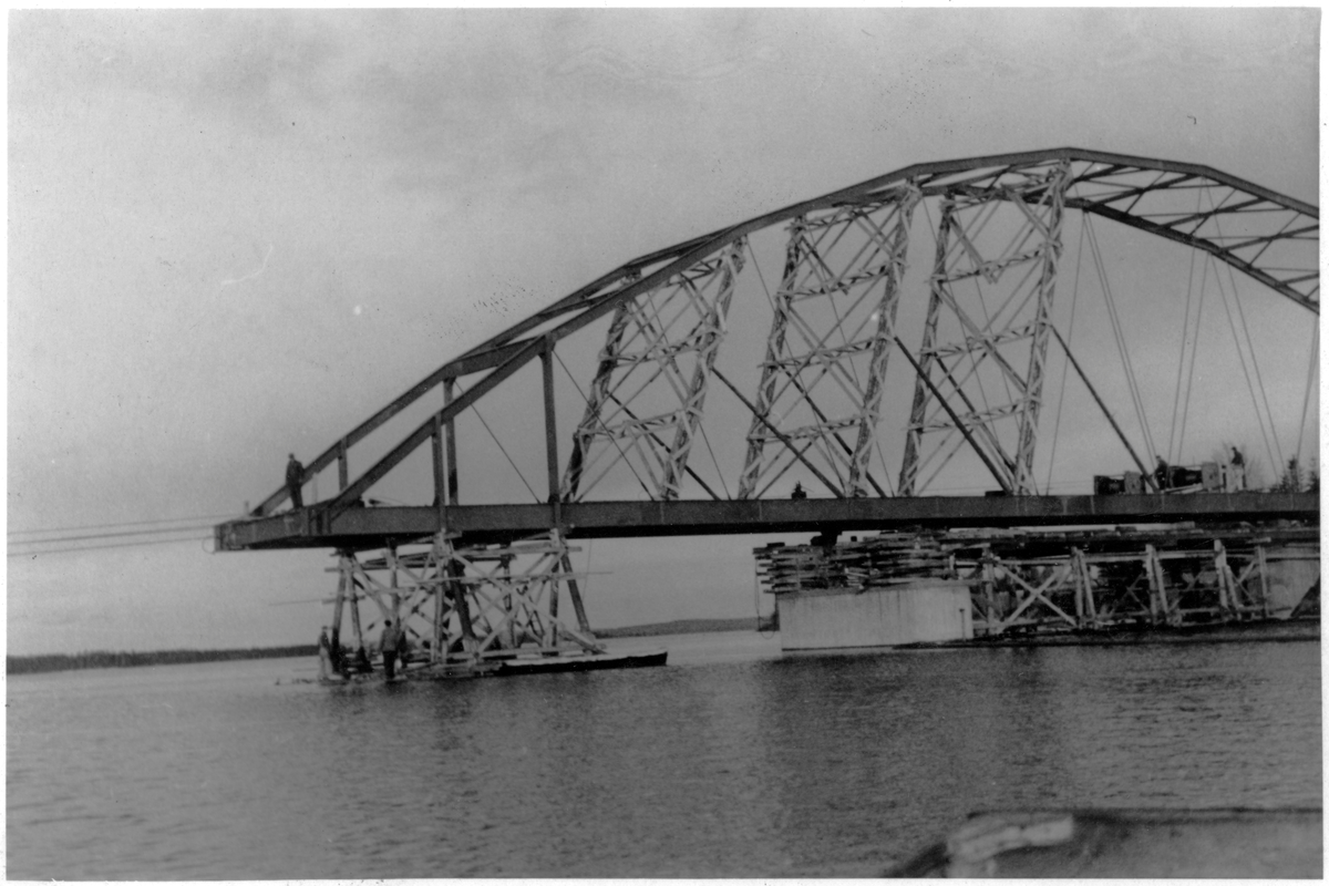 Vägbro över Hammerdalssundet. Utdragning av första bågspannet.