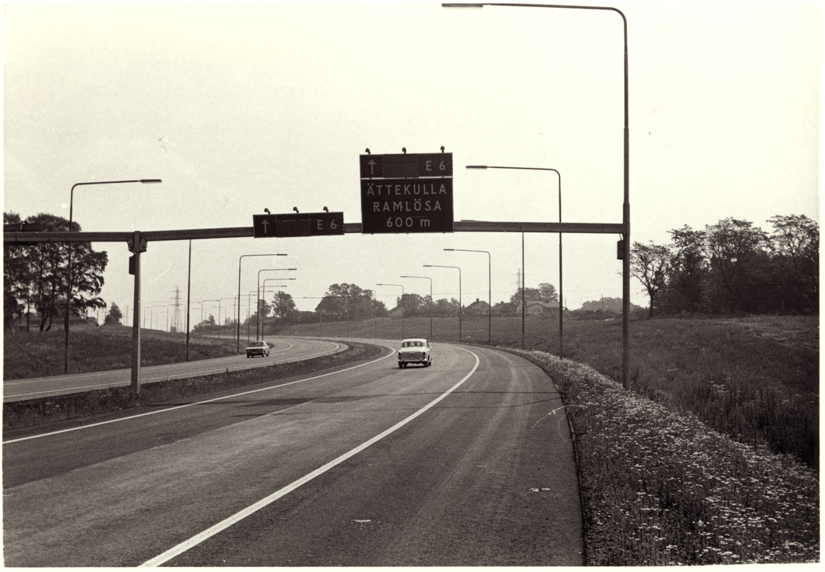Europaväg 6 i Helsingborg. Skyltar ovanför vägbanan.