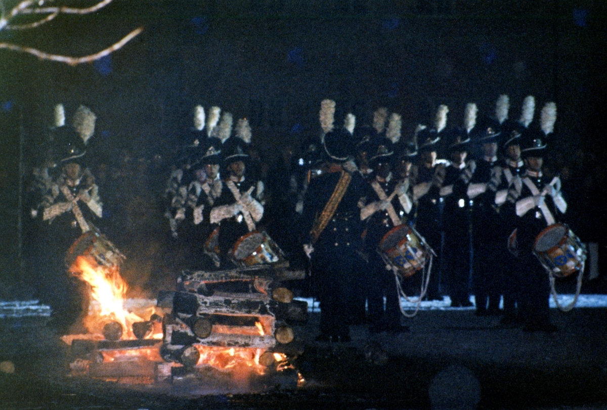 Arméns Trumkår bidrog med musiken. Nedläggningen av I4 den 30. december 1997: Avslutningsceremoni på kaserngården sen eftermiddag i mörker med eldar, strålkastare och ett kraftigt snöfall som bidrog till en mycket speciell stämning. Livgrenadjärregementet (I 4/Fo 41) var ett infanteriförband inom svenska armén som verkade i olika former åren 19281997. Förbandsledningen var förlagd i Linköpings garnison i Linköping. Försvarsområdesstaben vid Livgrenadjärregementet avvecklades den 31 december 1997 vilket i praktiken innebar att även regementet avvecklades.