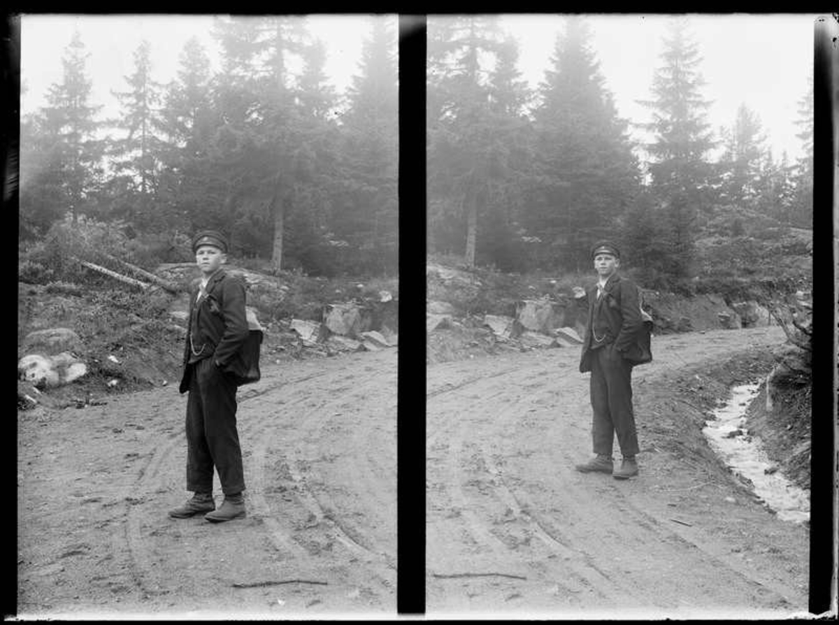 Nils Steiner Bjärby 1907-02-22 gående med postväskan på "Fjällvägen" Öresjö. Enligt församlingsboken så emigrerade Nils Steiner till Nord Amerika 22/10 1926.