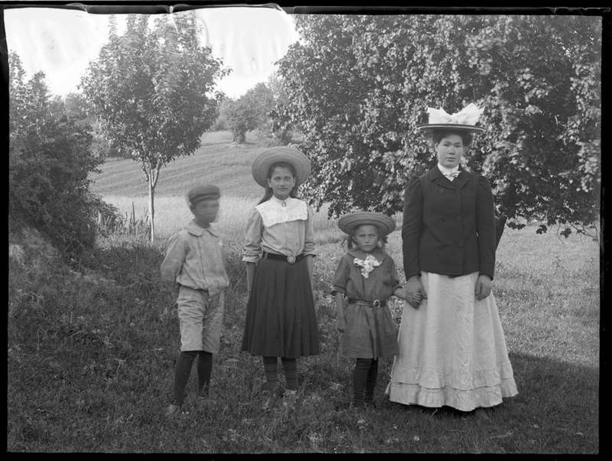 Olof Jonssons text:"Jenny Andersson och Karlinders barn på besök på Torpet, Arnstorp.