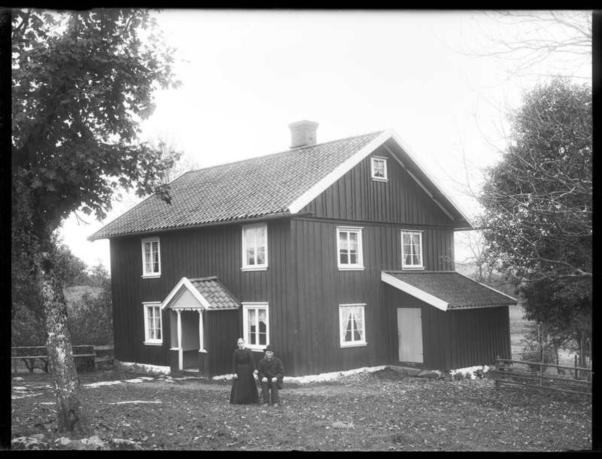 Josef Nilsson, Herrestad f1857-12-04 och hans hustru Anna Ulrika Andreasdotter, Forshälla f1856-01-27 framför boningshuset i Lunden, Ingelstorp.