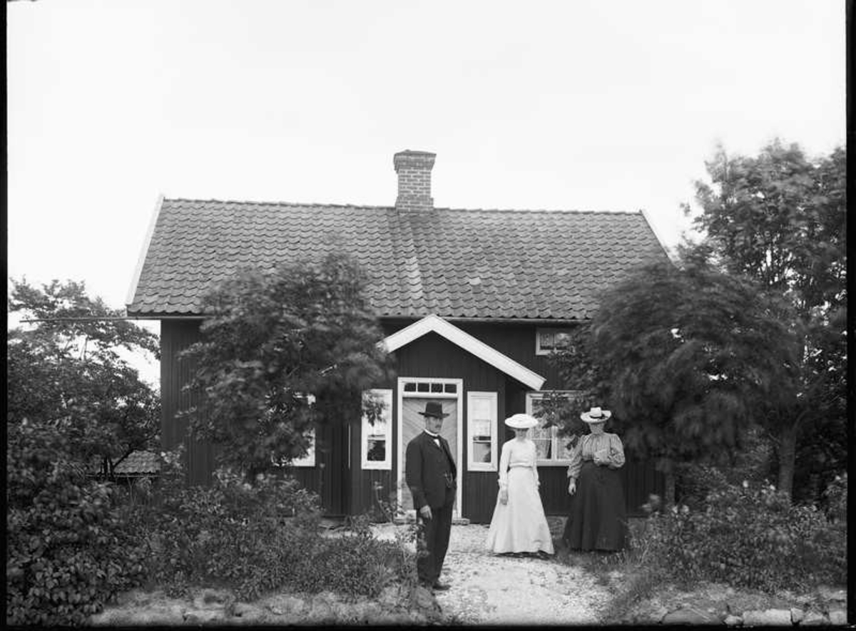 Olof Gunnar Dahlin Väne-Ryr 1880-04-08 gift 1910-12-18 med Maria Kristina Håkansson Väne-Ryr 1874-10-09 (troligen damen i mitten). Damen till höger troligen änkan Emma Kristina Dahlin (född Ström) Härened 1844-06-20.