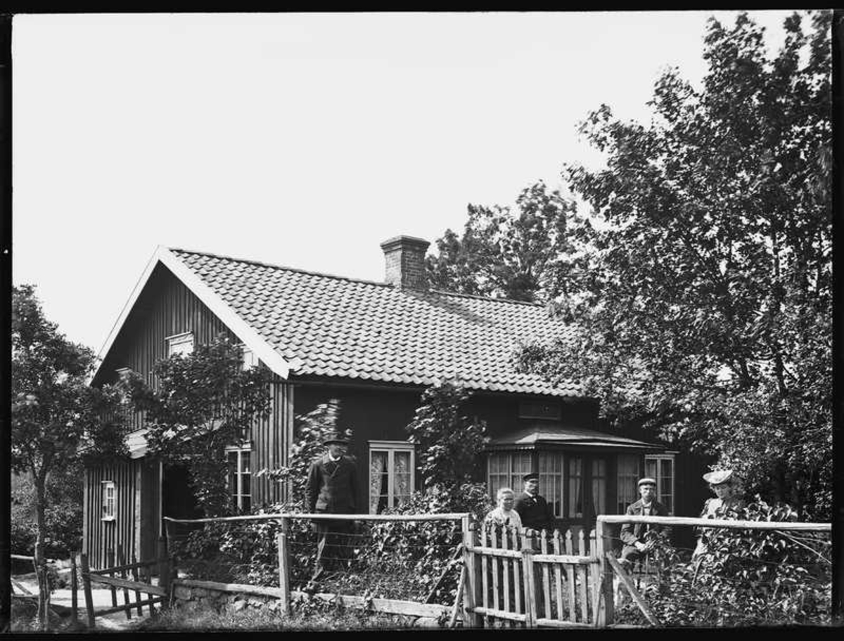 Personerna på bilden bör vara Olof Gustaf Andersson, Naglum 1847-05-27, systern Ida Charlotta Andersson, Naglum 1854-11-26, brodern Karl Johan Andersson, (Store Karl), Naglum 1866-09-09, och Idas son Karl Ivar, Naglum 1884-03-04. Damen med hatt skulle kunna vara Karl Ivars (Lelle Karls) hustru Agnes Serafina Karlsson, f.1896, som han gifte sig med.