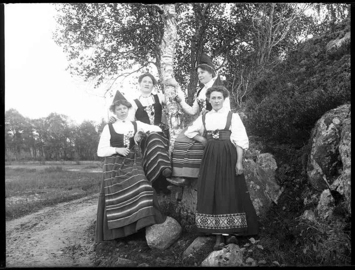 Väne-Ryr. Vid Ryrsjöns strand. Fyra kvinnor i folkdräkt