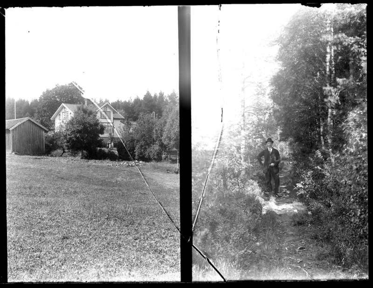 På vänstra delen boningshuset på Ekeberg, Övre Bräcke - andra halvan en man Anders Johansson från Grunnebo.