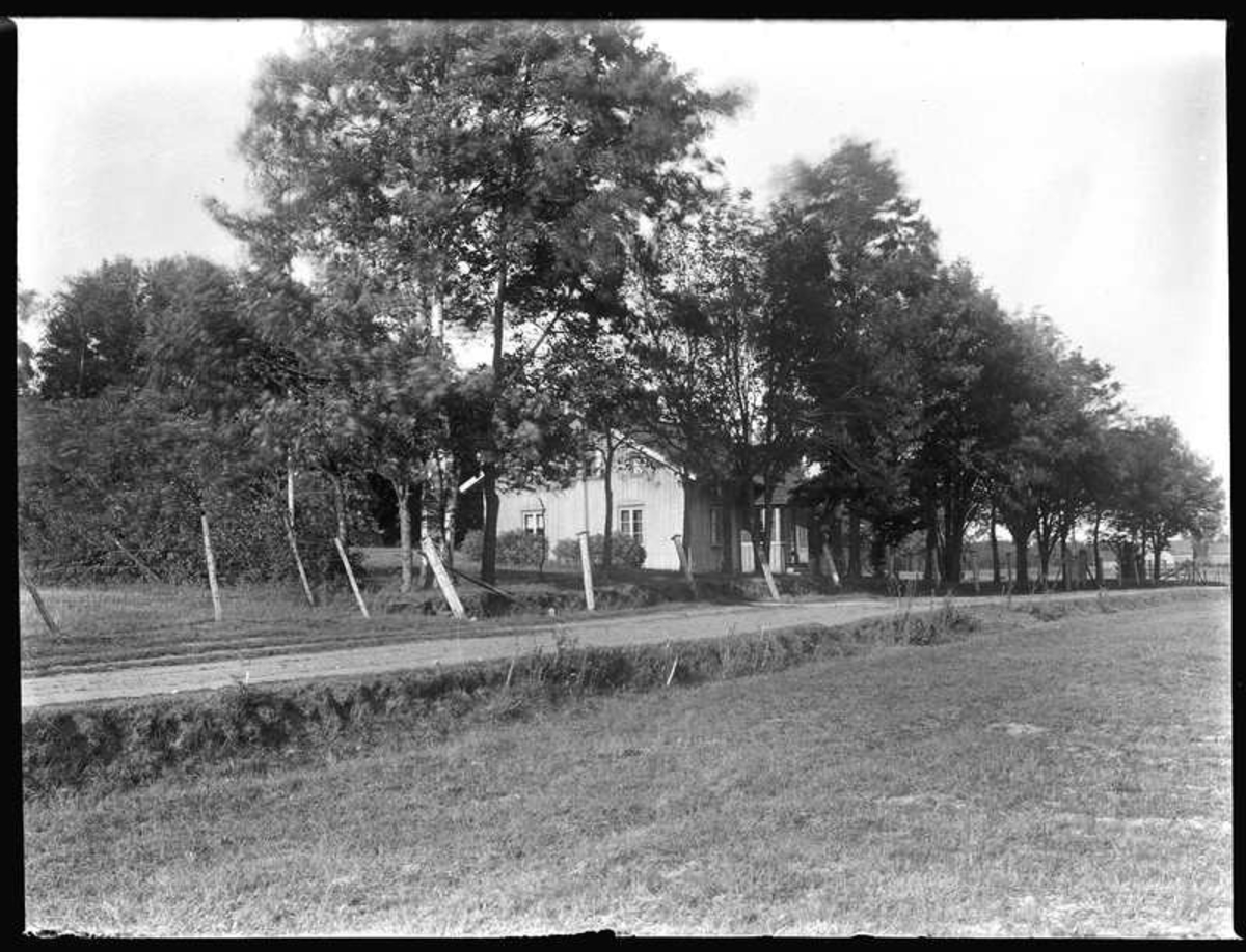 Bilden visar den gamla landsvägen till Uddevalla vid Övre Bräcke i bakgrunden skymtar uthusen på granngården.