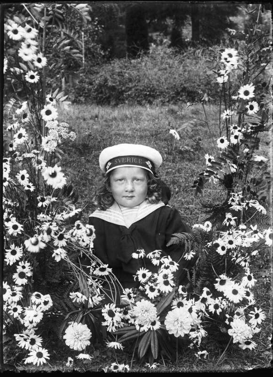 Sven Jonsson, Hjärtum 1915-05-14. Barnen bär en mössa som det står Sverige på.