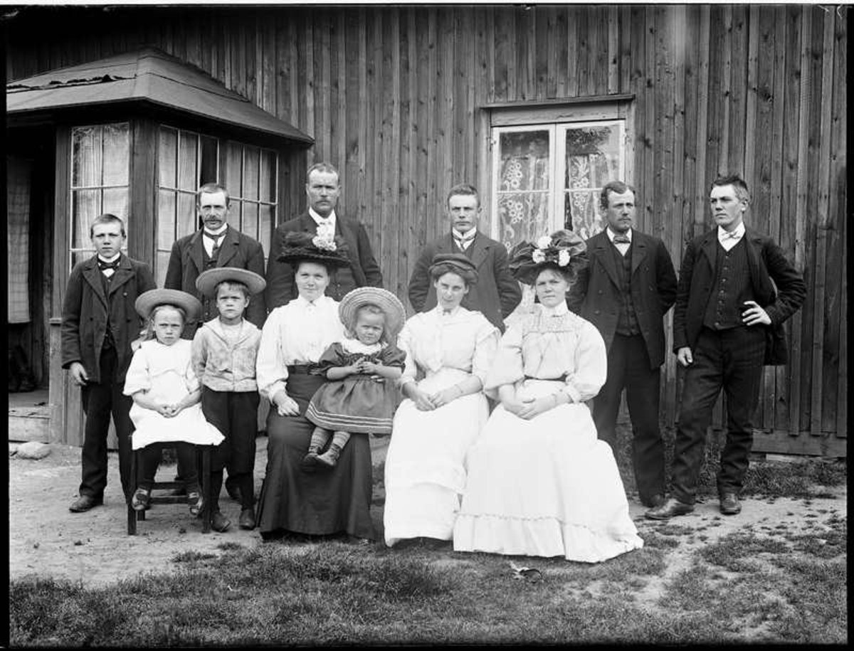 Olof Jonssons text: "Johannes Anderssons barn och mågar i Brevik, 11 augusti 1909".
