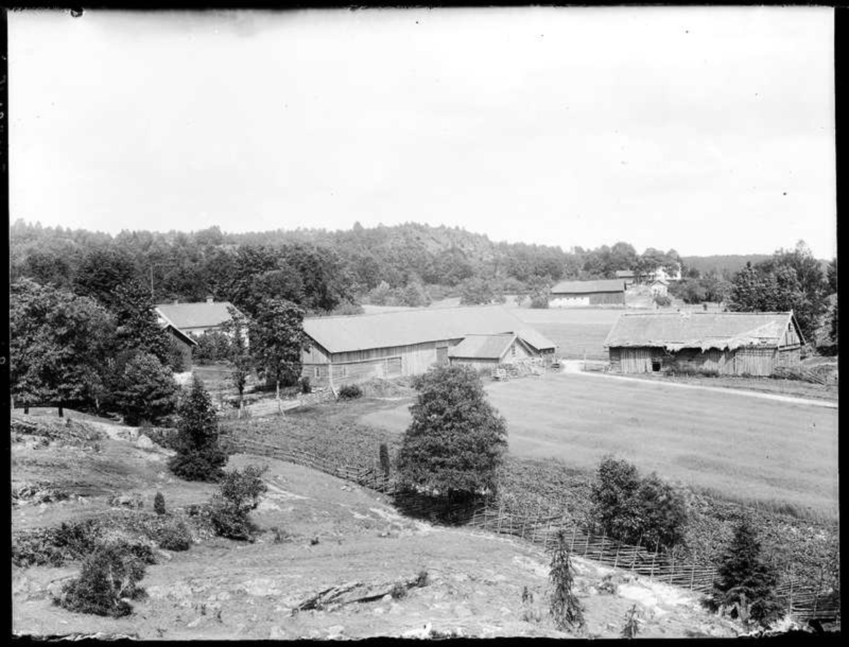 I bakgrunden Riksdagsmannen i Intagans hus och i förgrunden Intagan 7:1. Ladugårdarna i förgrunden idag borta och här går vägen idag.