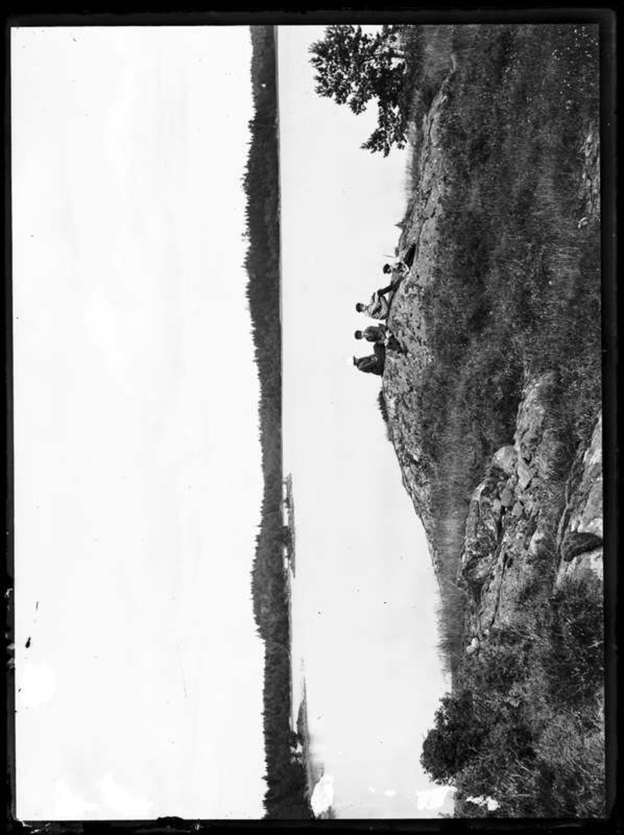 Vy över Öresjö, bilden tagen från det berg som tillhör fastigheten Brevik 1:5. På berget sitter Olga, född Olsson, Forshälla 1891-05-12, Nils, Hjärtum 1918-01-09, Sven, Hjärtum 1915-05-14, Erik, Hjärtum 1919-07-26,