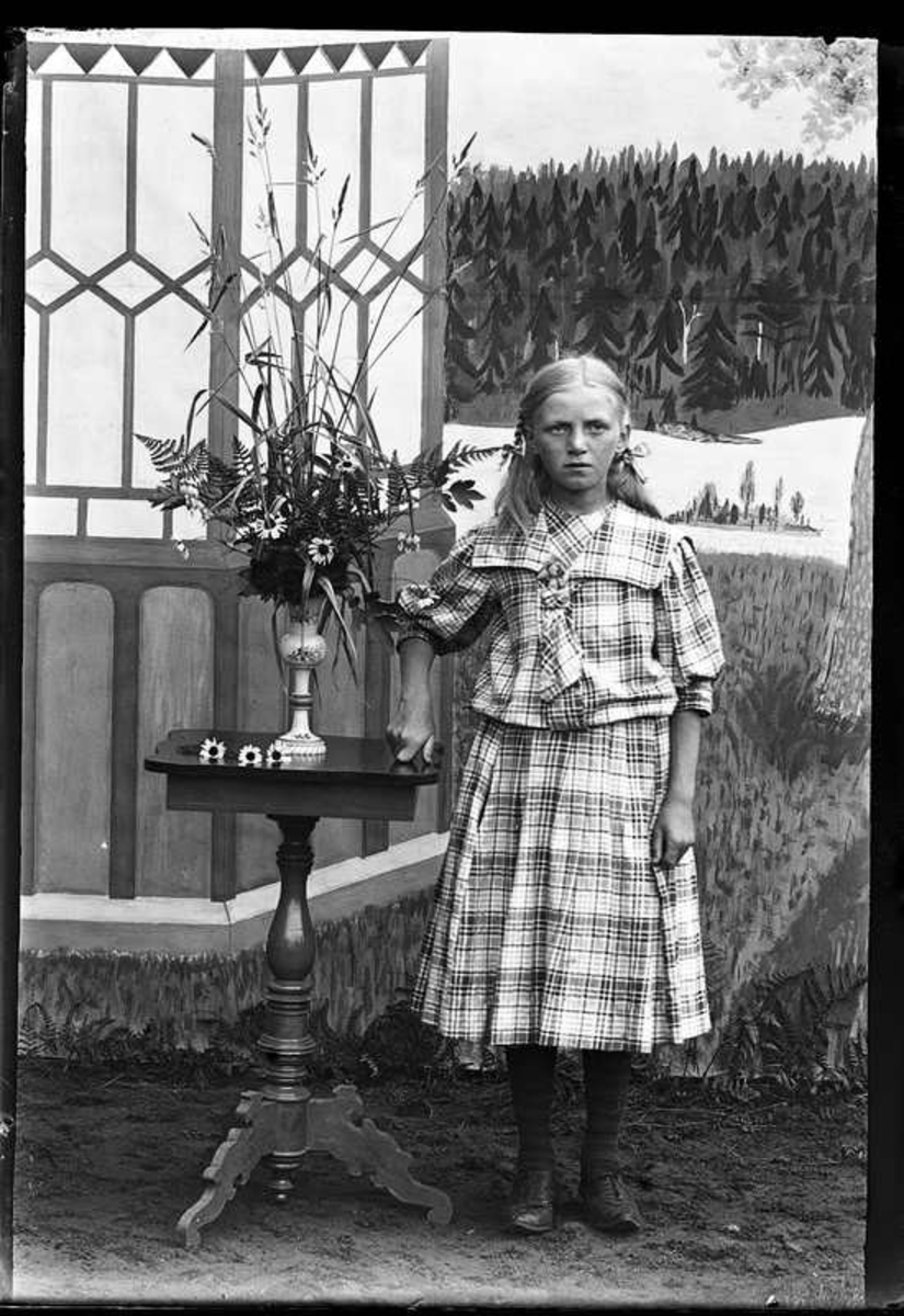 Linnea Bjurström poserar framför målad bakgrund