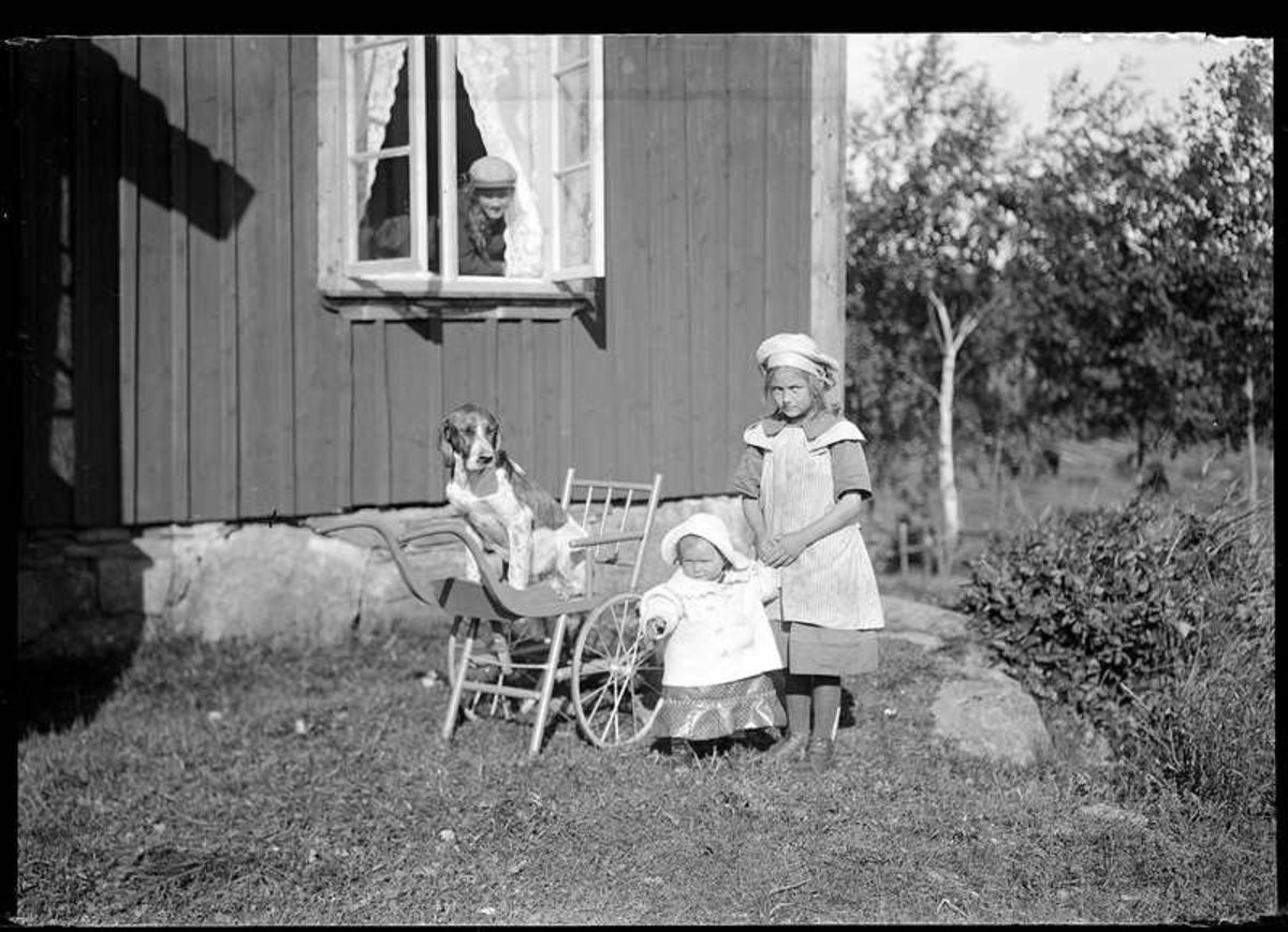 Olof Jonssons text: "Karlinders barn med hund, 1 juli 1909".