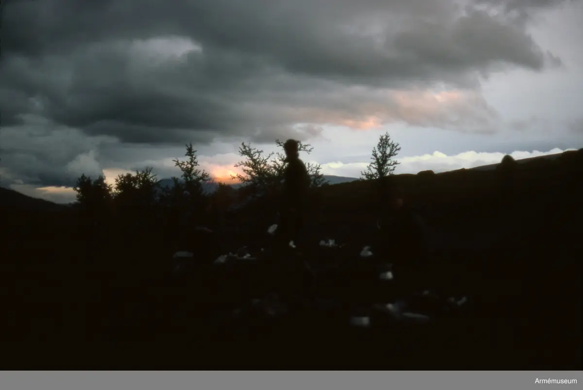 Titel: Regn upphör med soldränkta fjäll mot slutet av fjällmarschen.