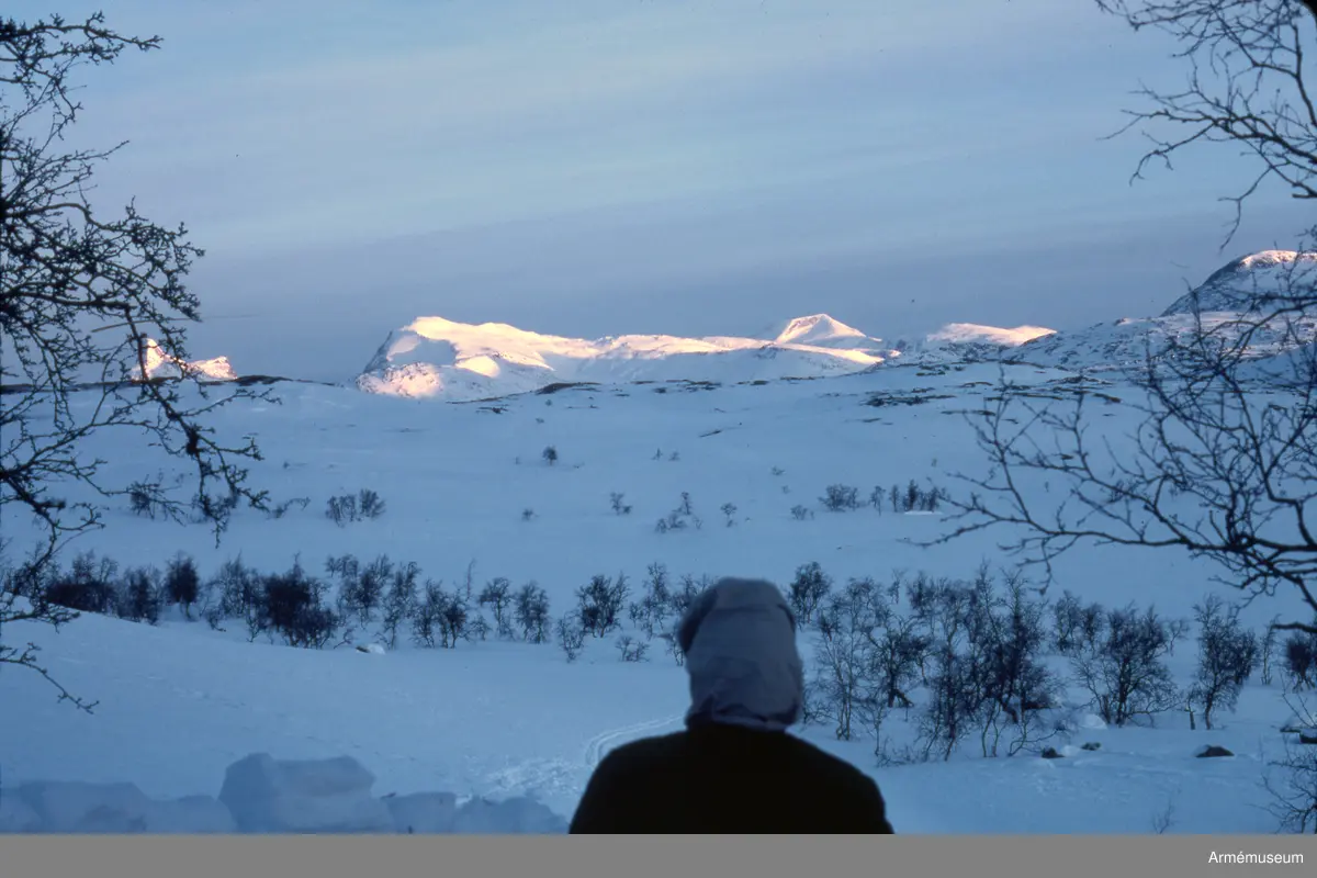 Titel: På post med vacker vy mot norska fjälltoppar.