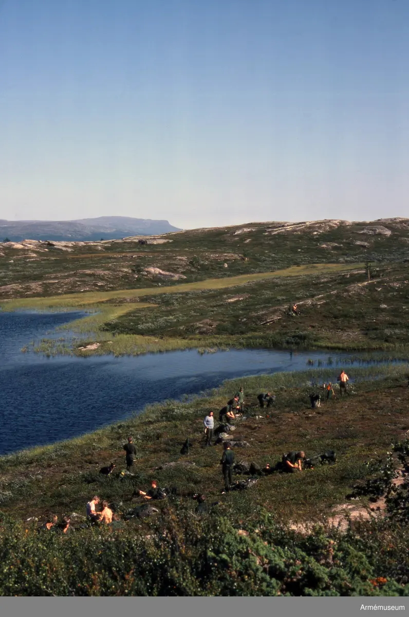 Titel: Regn upphör med soldränkta fjäll mot slutet av fjällmarschen.