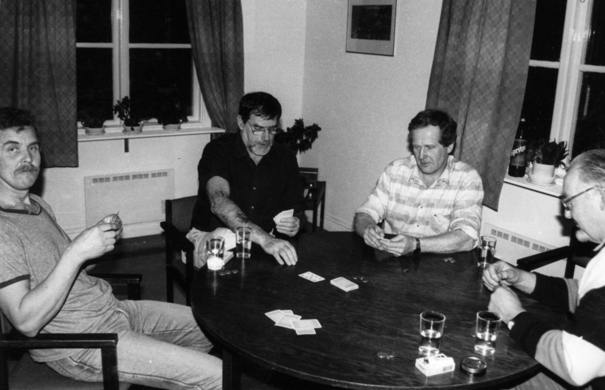 Bild 1: Kortspel i dagrummet. Från v; Kjell Strömkvist, Svante Blomkvist, Kurt Madell och Einar Lantz.
