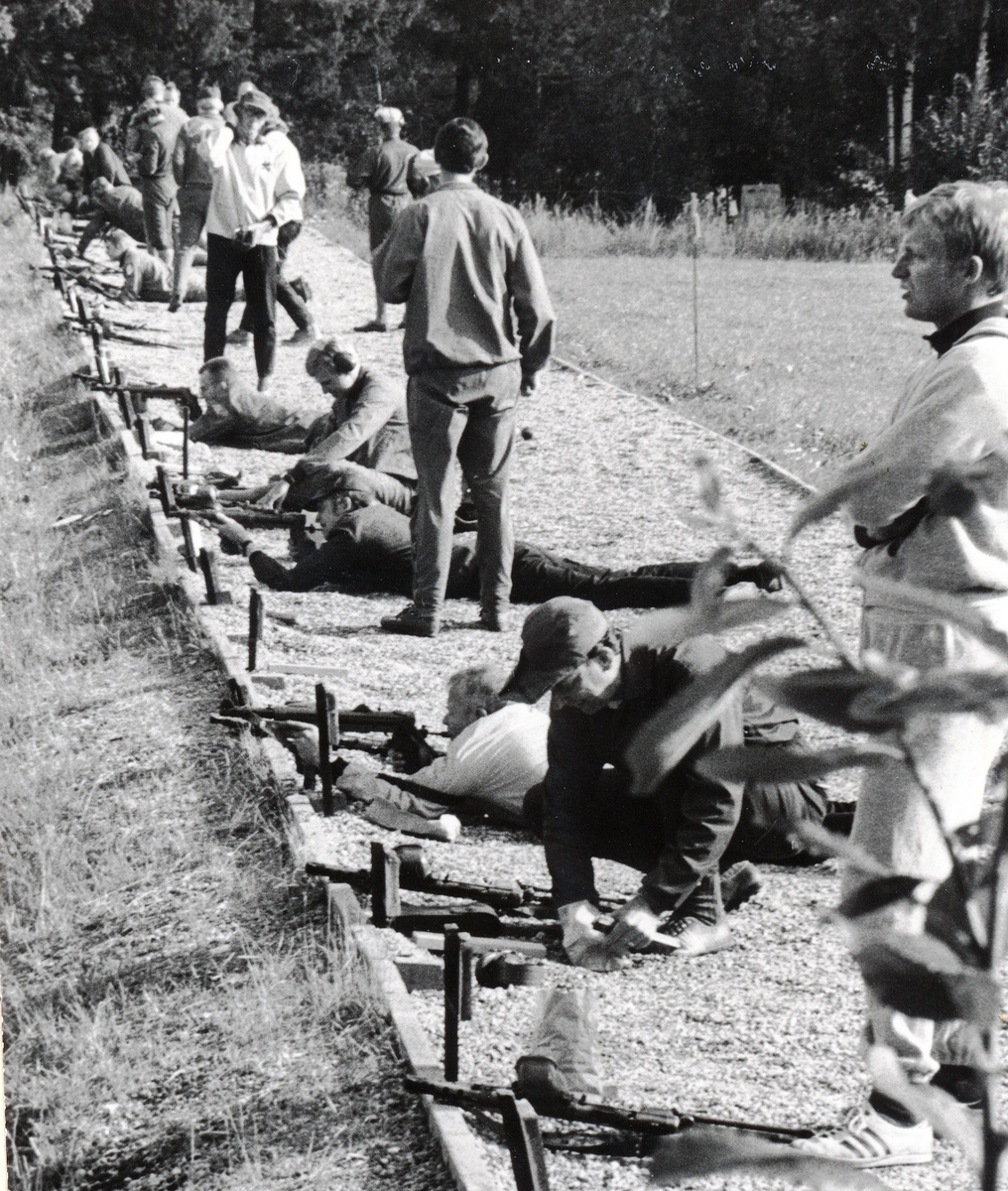 Förberedelser för skjutning. Skjutavstånd 100m. Skjutställning liggande.