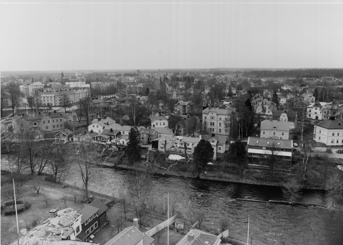 Del av centrala Gävle från Trefaldighetskyrkans torn mot söder.