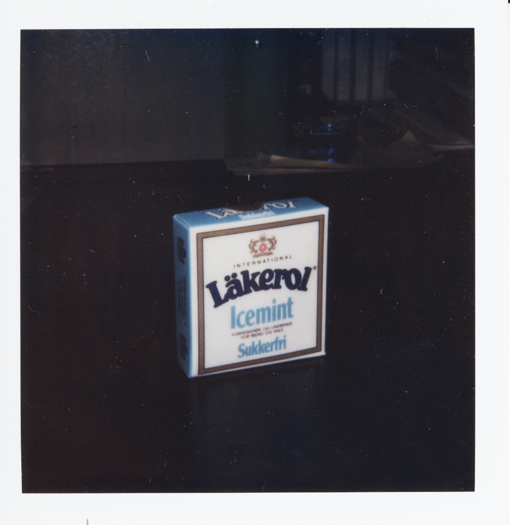Läkerol Icemint. Vit och blå ask. Sockerfri. Danmark.