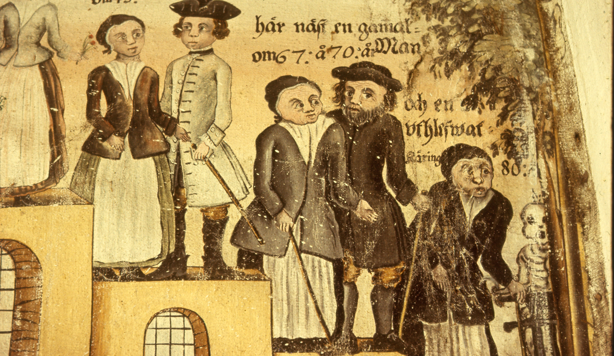 Del av väggdekor. Ålderstrappa. Illustration av livet från födsel till död.