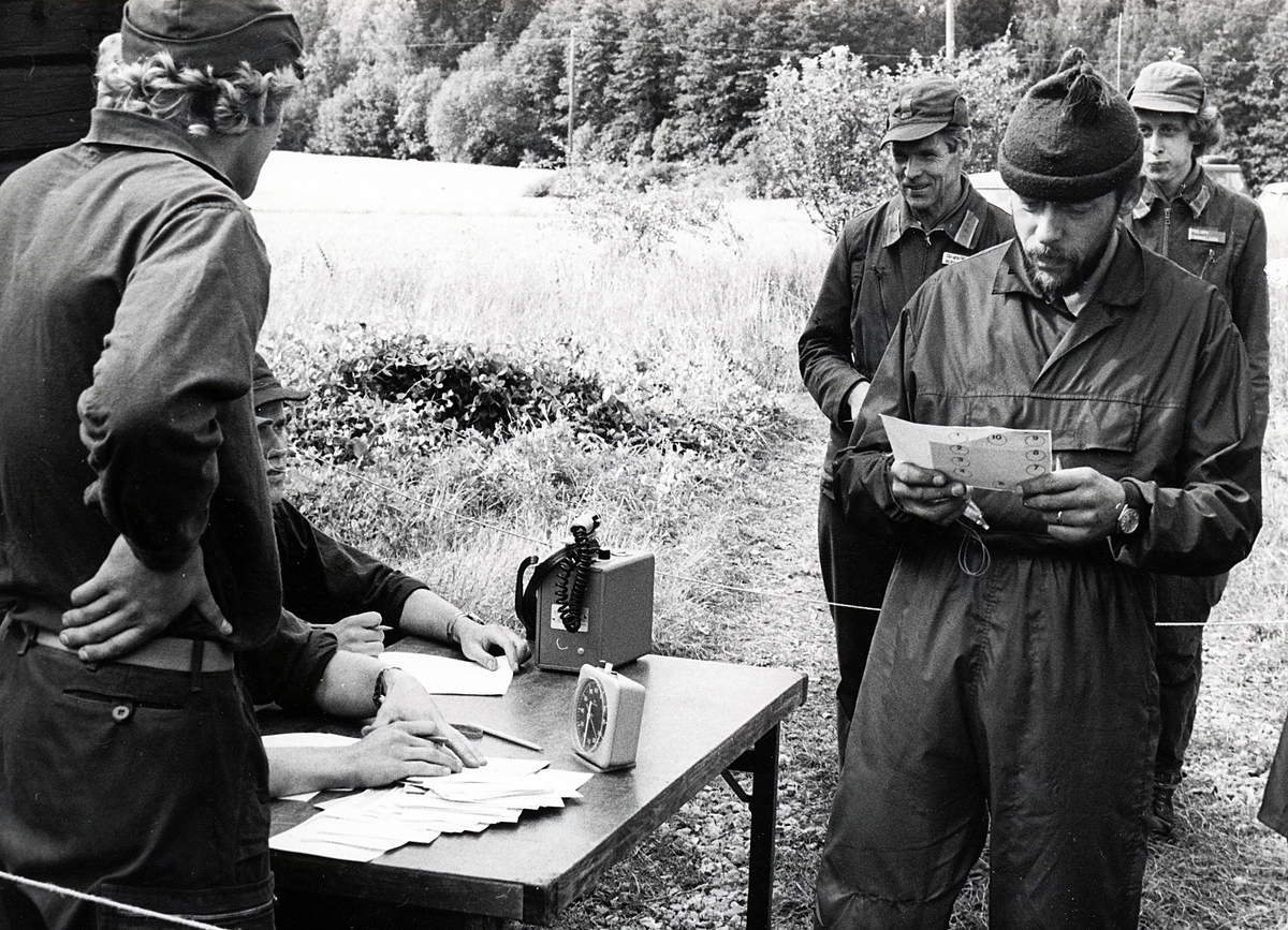 Kartstudium av Gösta Håkansson. Bakom honom en glad Karl-Åke Bergström.