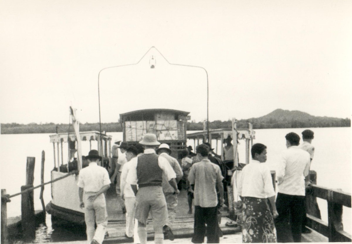 Lastning av Siam Match Factory (SMF) tändstickor på båt. Tändstickskampanj.