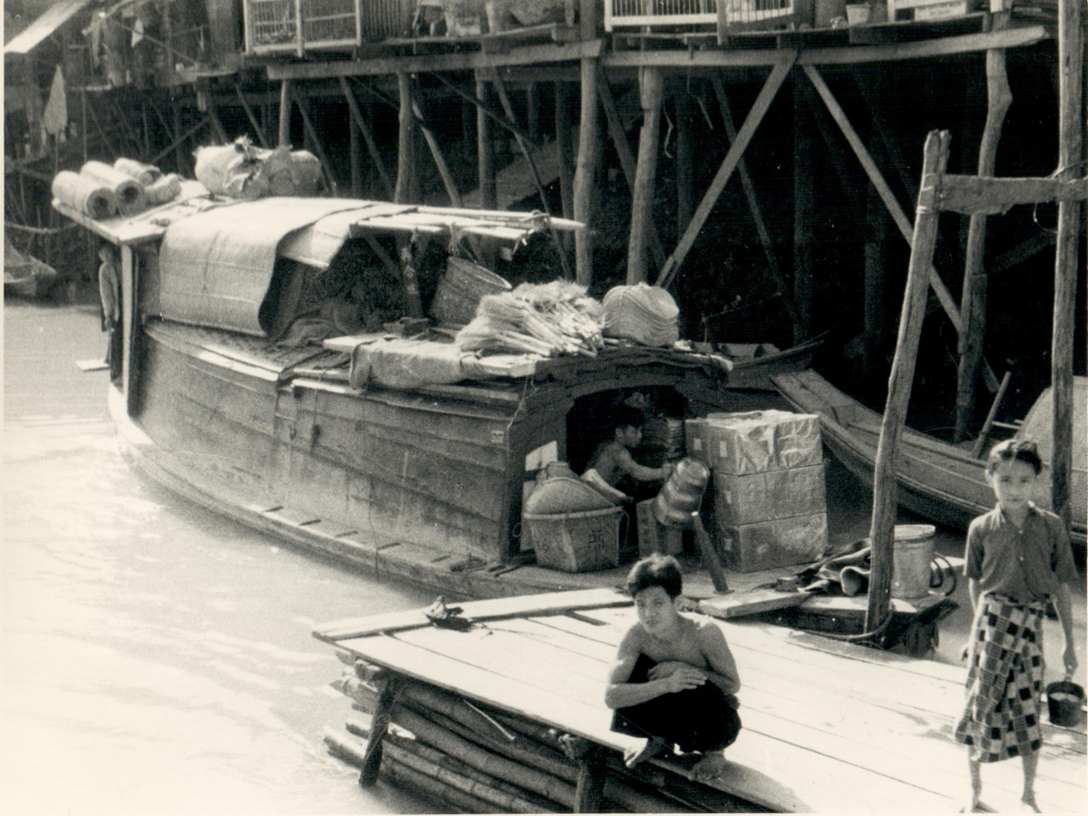 En handelsbåt med tändstickor från The Siam Match Factory.