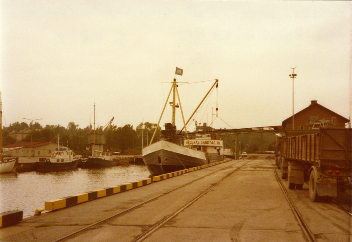 Underås Sandtag III lossar singel vid Tullhuskajen i Västerås 4/9 1979