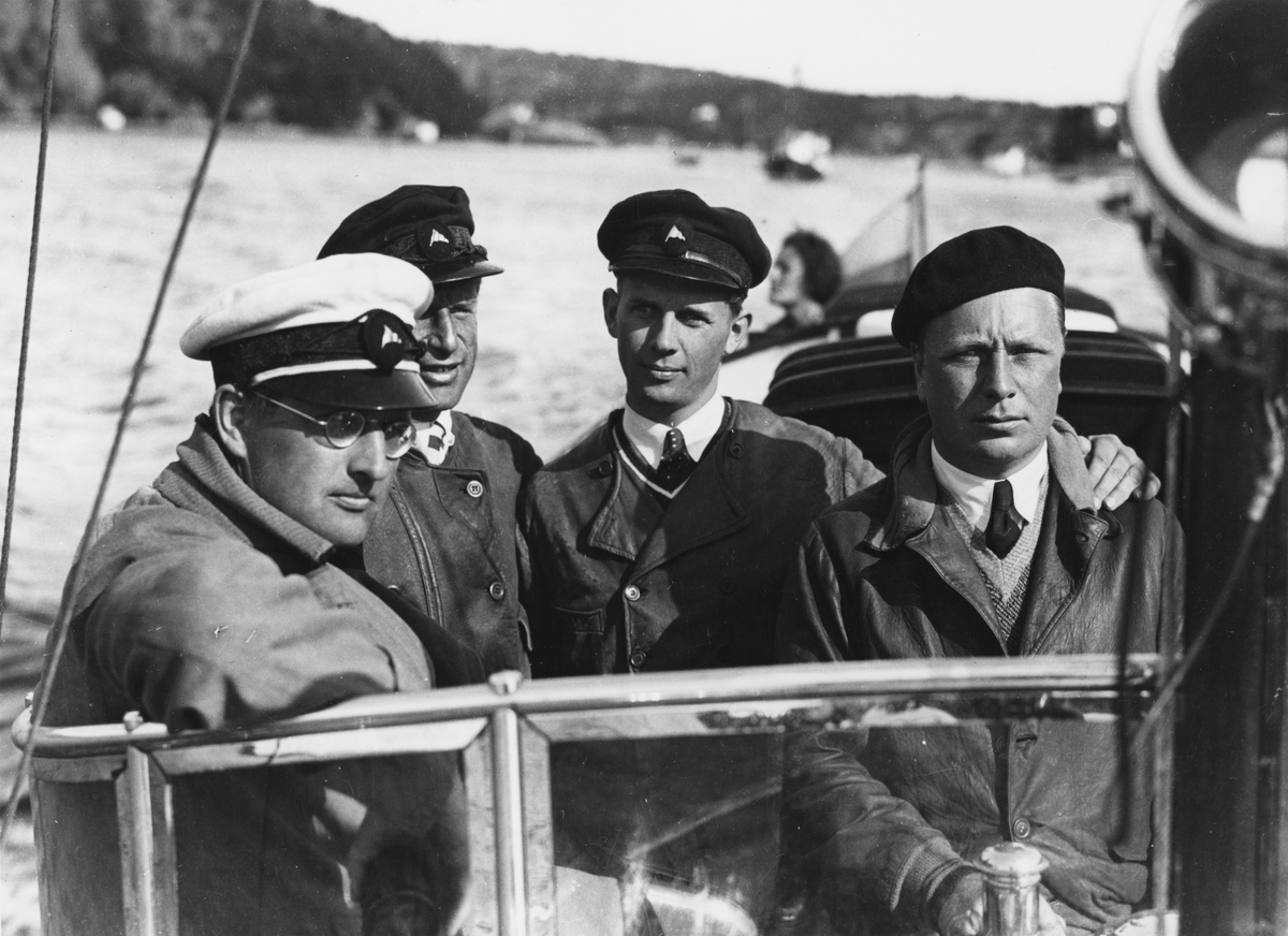 T v i vit mössa Arvid Schulz, t h i basker Henry Lindström, jfr foto i Seglarbladet årg. 20 (1930) nr 13 s 125. I vilket sammanhang bilden tagits är inte bekant.