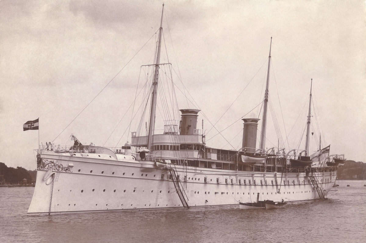Den tyska kejserliga jakten HOHENZOLLERN på Stockholms ström i samband med Wilhelm II:s besök i Stockholm 1895.