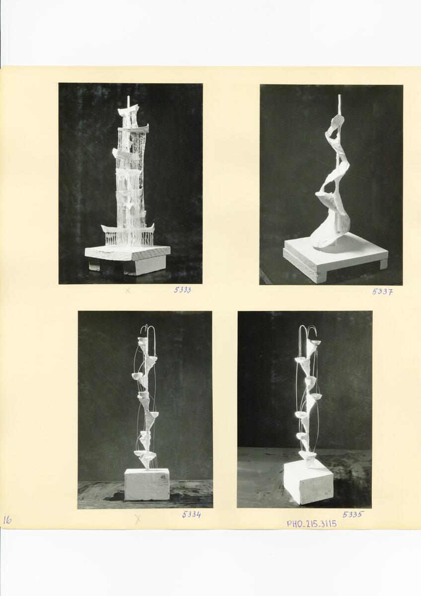 En bild av en fontänskulptur.; På fotografi; 1 bild av en fontänskulptur?, 1 bild av fontänskulpturen Daggkåpan?, 2 bilder av en fontänskulptur, Från skål till skål eller Från kopp till kopp.