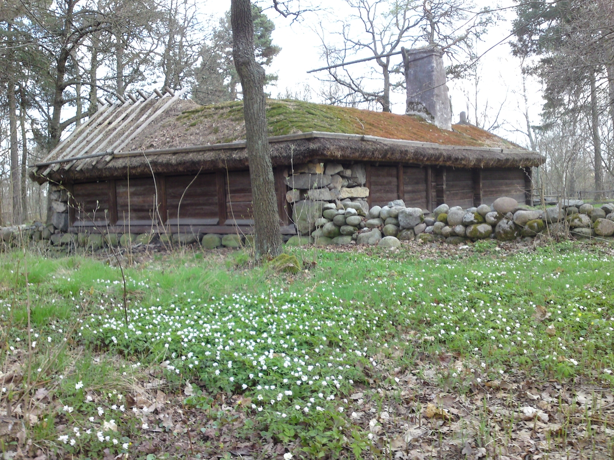 Vitsippor i skogsdungen bakom Hornborgastugan.