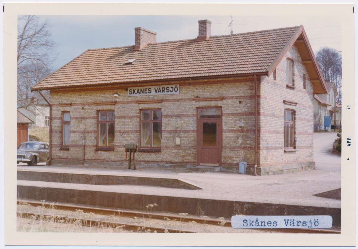 Stationen byggd 1893, station öppnad 15 mars 1895 med stationshus. Uthus och godsmagasin finns kvar. Hette tidigare VÄRSJÖ namnet ändrades 10 maj 1945. Envånings stationsbyggnad i tegel.Till SJ 1940. Persontrafiken nedlagd 1968.
