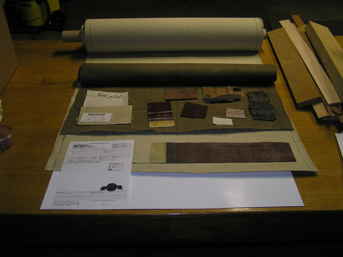 Vävprover till SJ Ro2 2702. Även prover på ytbehandling.