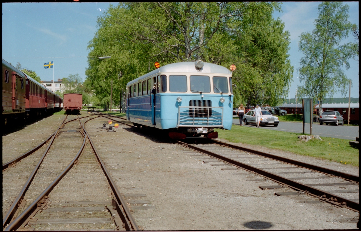 Motorvagn på bangården vid Nora stad station under Nora Bergslags Veteran-Järnväg, NBVJ 25års-jubileum.