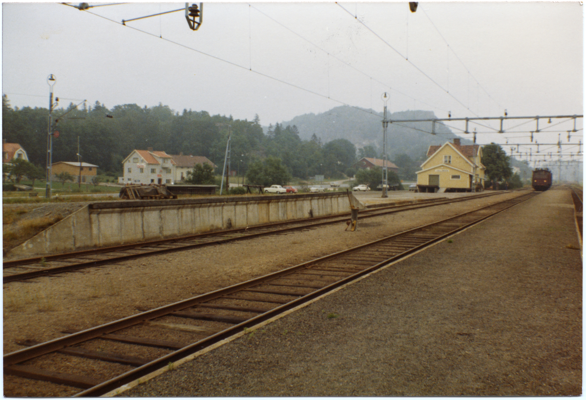 Lysekils Järnväg, LYJ, Stationen anlades 1913. Stationshuset, en- och en halv vånings i trä, har senare renoverats. Vidare har tillkommit ny väntsal för resande med bussarna till Gravarne. Bangården utökades med ett spår 1949. Statligt 1939-07-01. Elektrifiering 1950-06-10. Fjärrblockering 1957.