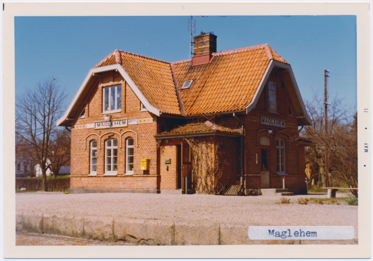 Stationen öppnad 1900 med stationshus.Hållplats anlagd 1901. En- och enhalvvånings stationshus i tegel. Stationshuset finns kvar i privat ägo och Kallas för "Maglehus".