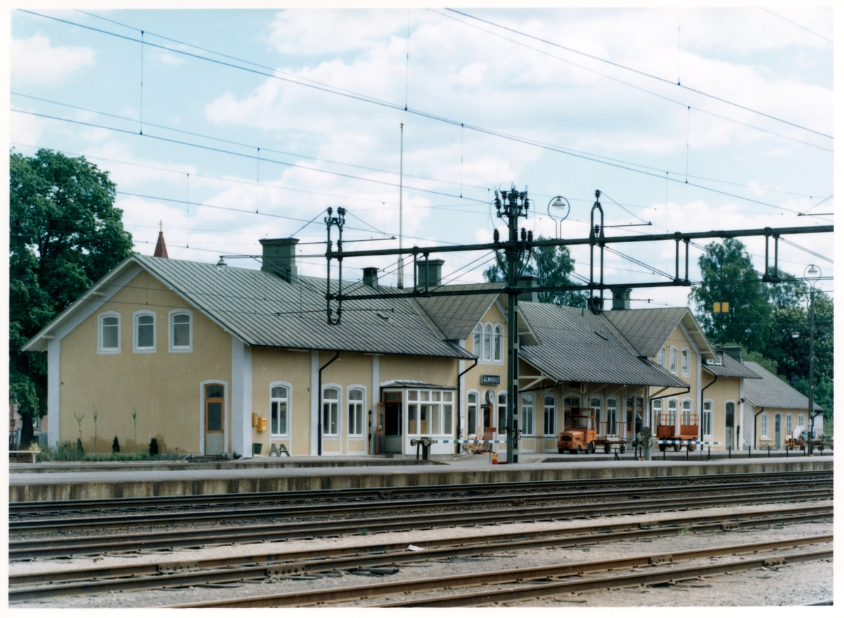 Stationen anlades 1862. Efter brand 24 december 1878 ombyggdes stationshuset. 1921 tillbyggdes norra och södra ändarna, varvid plats bereddes för postkontoret i stationens södra del. Envånings stationshus i sten.